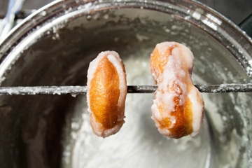 - ניתן לבצק 4 שעות של תפיחה. ונכין לנו משטח מקומח, עליו נתחיל לפרק את הבצק ולסדר אותו בצורה של דונאטס. נטגן בשמן עמוק כ-3 דק' אפשר להגיש עם אבקת סוכר או שוקולד מעל בתאבון!